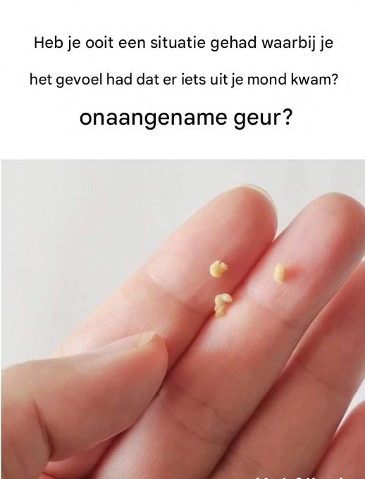 🦷🦠 Slechte adem, een vreemd gevoel in de keel, een aanhoudende hoest… en de oorzaak is misschien verrassend simpel: amandelstenen . Hoewel ze eng klinken, zijn ze een veelvoorkomend probleem waar veel mensen zich niet van bewust zijn. Vandaag leggen we uit wat ze zijn, hoe je ze herkent en hoe je er effectief vanaf komt.