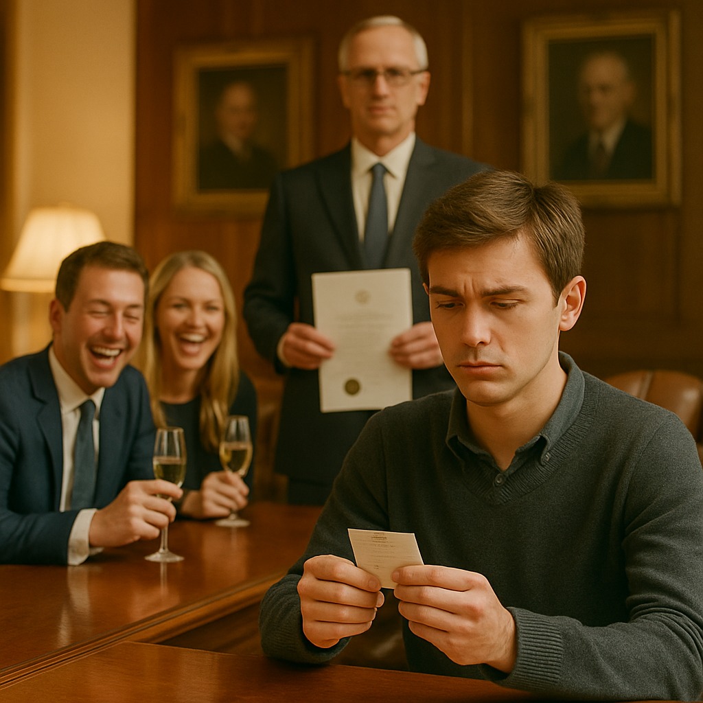 Ale wtedy nie wiedziałem, że odczytanie testamentu będzie początkiem, a nie końcem. Gabinet, w którym nas zgromadzono, pachniał skórą i starymi cygarami, tak samo jak podczas każdego niezręcznego rodzinnego obiadu, w którym byłem zmuszony uczestniczyć. Prawnik dziadka, pan Dalton, siedział za masywnym dębowym biurkiem, wyglądając jak przedsiębiorca pogrzebowy, który wygrał na loterii. Jego asystent rozłożył już kilka grubych kopert manilowych, każda z nich opatrzona imieniem i nazwiskiem napisanym precyzyjnym pismem dziadka.