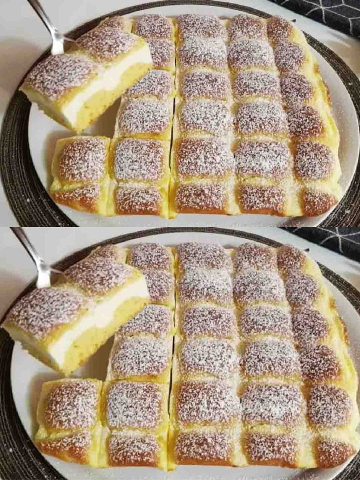 Deeg: 3 eieren; 8 g vanillesuiker; 8 g bakpoeder; 7 cl melk; 75 g stevia; 10 cl olie; 200 g bloem; poedersuiker; 1 snufje zout