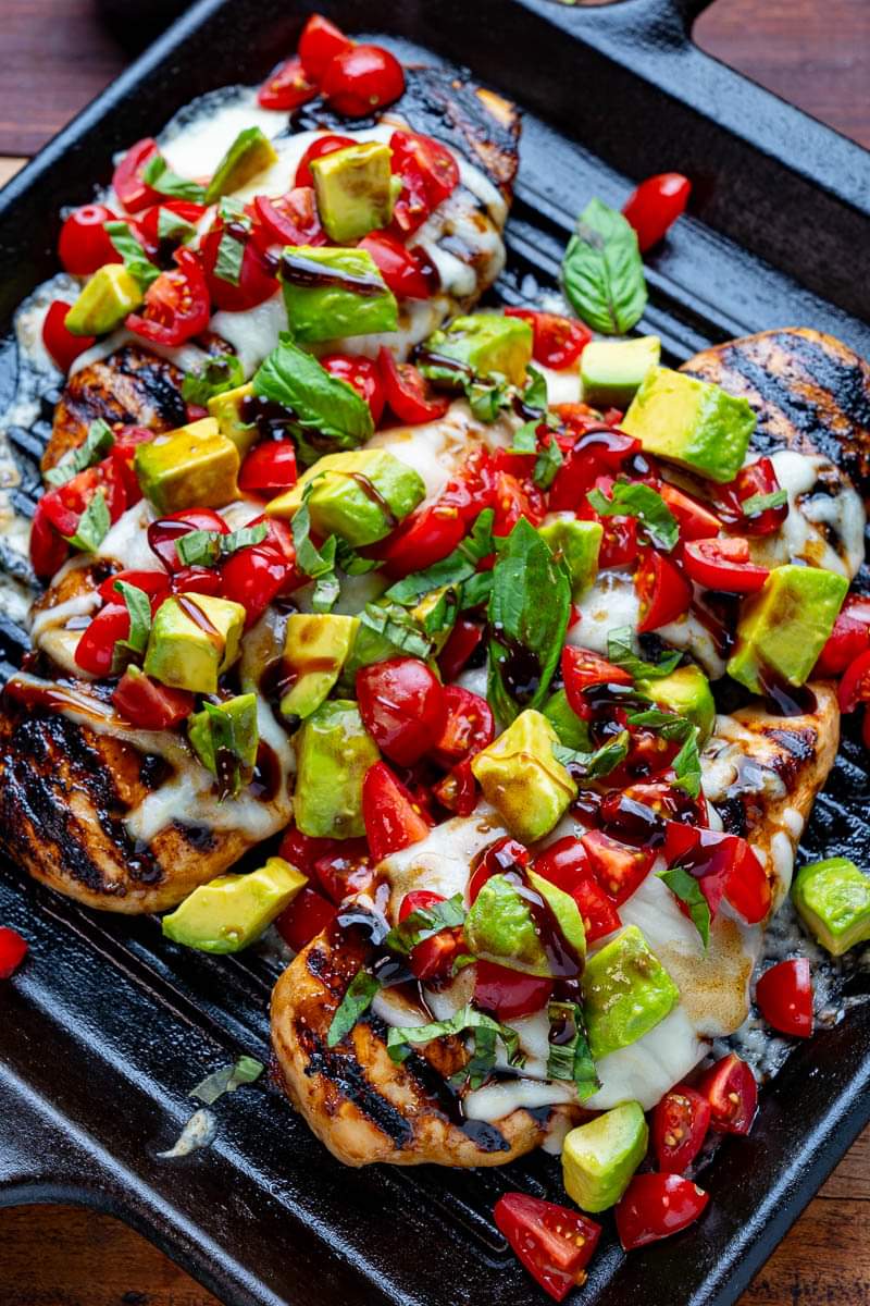 Een eenvoudige gegrilde kip gemarineerd in een balsamicovinaigrette, gegarneerd met gesmolten kaas, avocado, tomaat en basilicum! ingrediënten: 1 pond kippenborsten of dijen zonder botten, zonder vel, fijngestampt 1/4 kop balsamicovinaigrette 8 ons verse mozzarella-bal, in plakjes gesneden (of 1 kopje geraspte mozzarella) 1 grote avocado, in plakjes of in blokjes gesneden 1 kopje tomaat, in … Lire plus