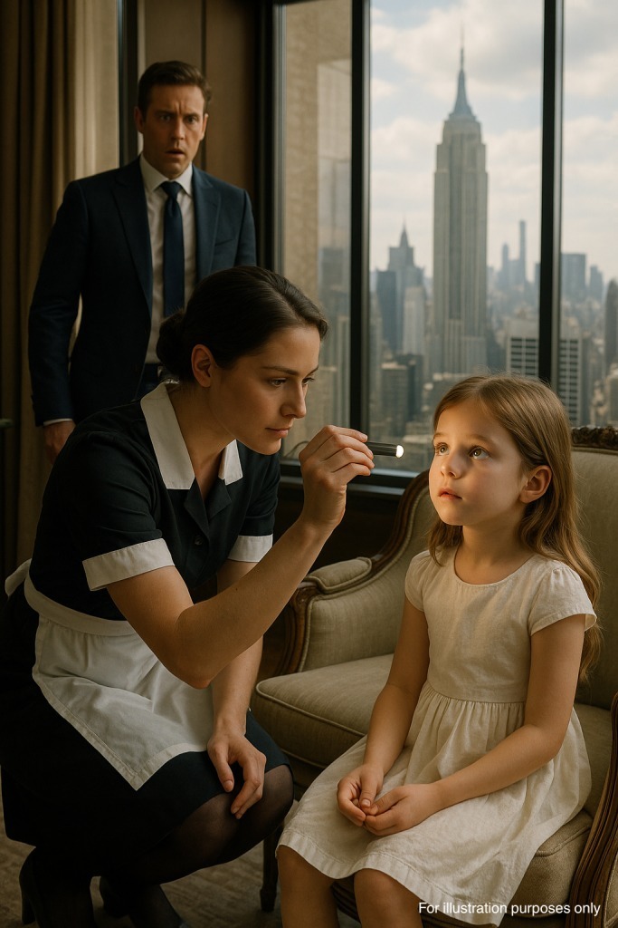 Słowa te uderzyły Richarda Wakefielda niczym młot w pierś. Głos siedmioletniej Luny, cichy, lecz spokojny, rozbrzmiał echem w okazałym, choć zimnym apartamencie na Manhattanie. Przez lata Richard akceptował okrutny werdykt najlepszych specjalistów na świecie: jego córka była niewidoma. Urodziła się niewidoma. Nic nie mogło tego zmienić. Wydał miliony na terapię, okulistów, technologie adaptacyjne, podjazdy i zabawki przeznaczone dla dzieci z wadami wzroku. A jednak oto Luna zadała pytanie, które przebiło każdy mur pewności, jaki zbudował wokół swojego serca.