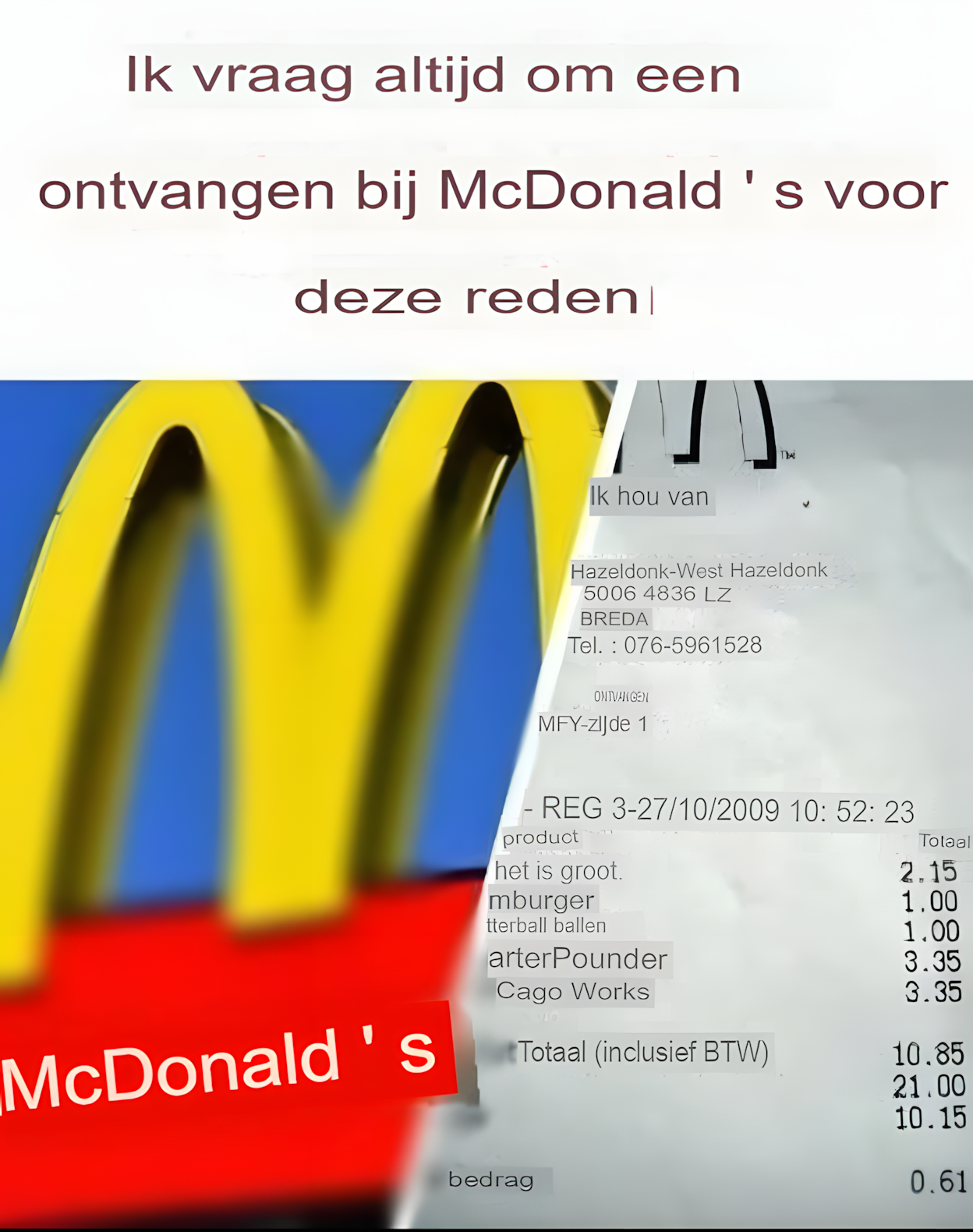 Daarom vraag ik bij McDonald’s altijd om een ​​bonnetje. – Beste recepten