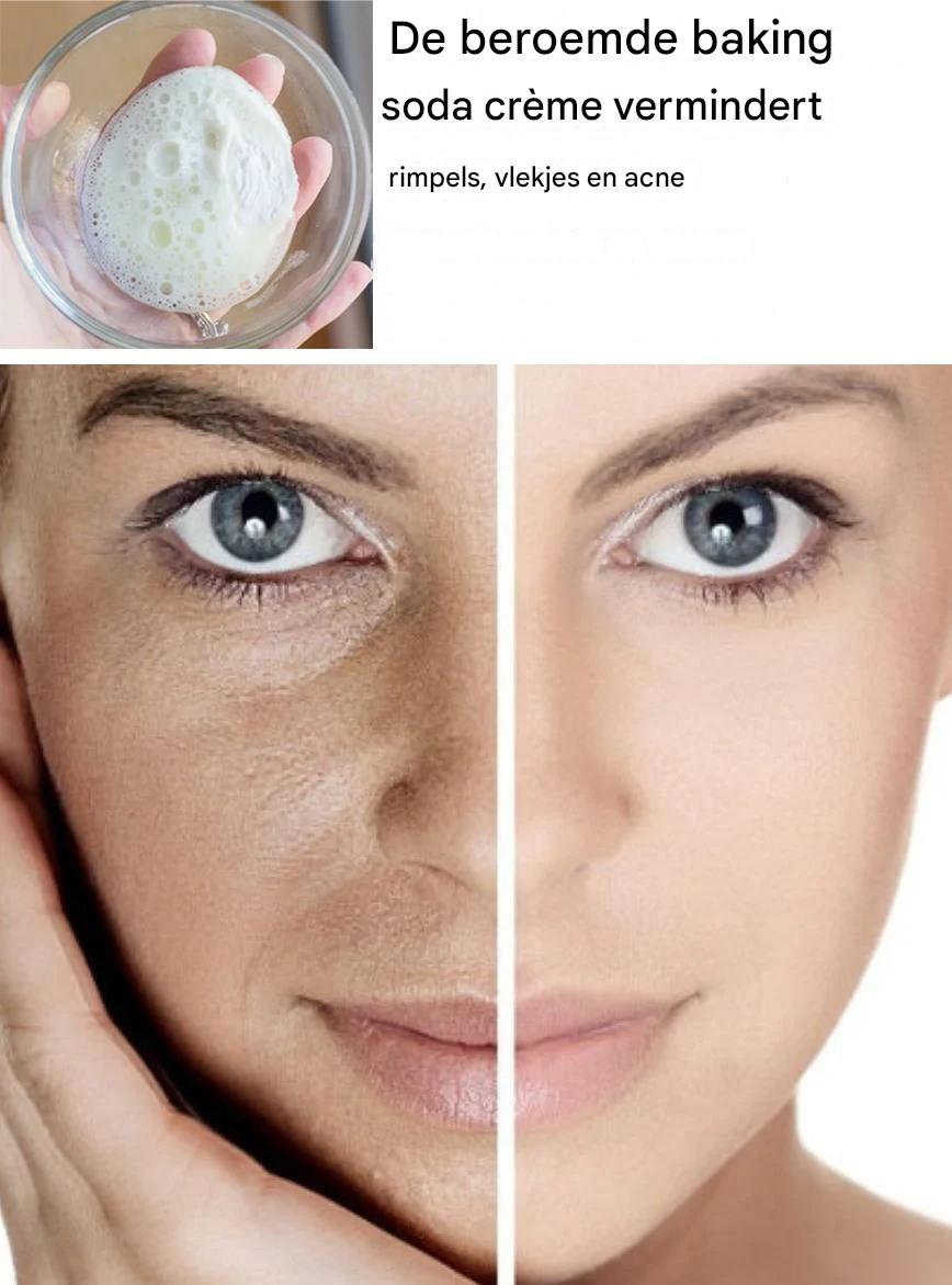De beroemde baking soda crème vermindert rimpels, donkere vlekken en acne.