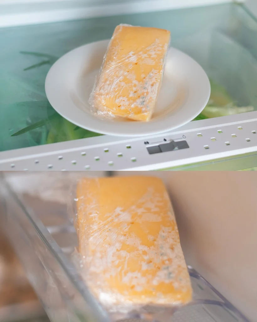 - Verandering van smaak : Als kaas goed wordt afgesloten, kan het een onaangename smaak ontwikkelen en geuren van andere voedingsmiddelen in de koelkast absorberen.
