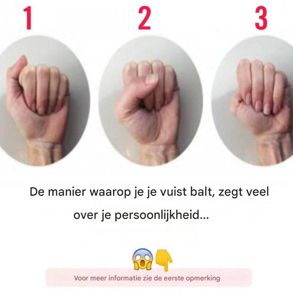 Je gebaren, je lichaamstaal en zelfs je houding kunnen veel over je zeggen. Wist je dat zelfs de manier waarop je je vuist balt iets over je persoonlijkheid kan onthullen? Er zijn drie manieren om je vuist te ballen – ontdek wat je vuist onthult!
