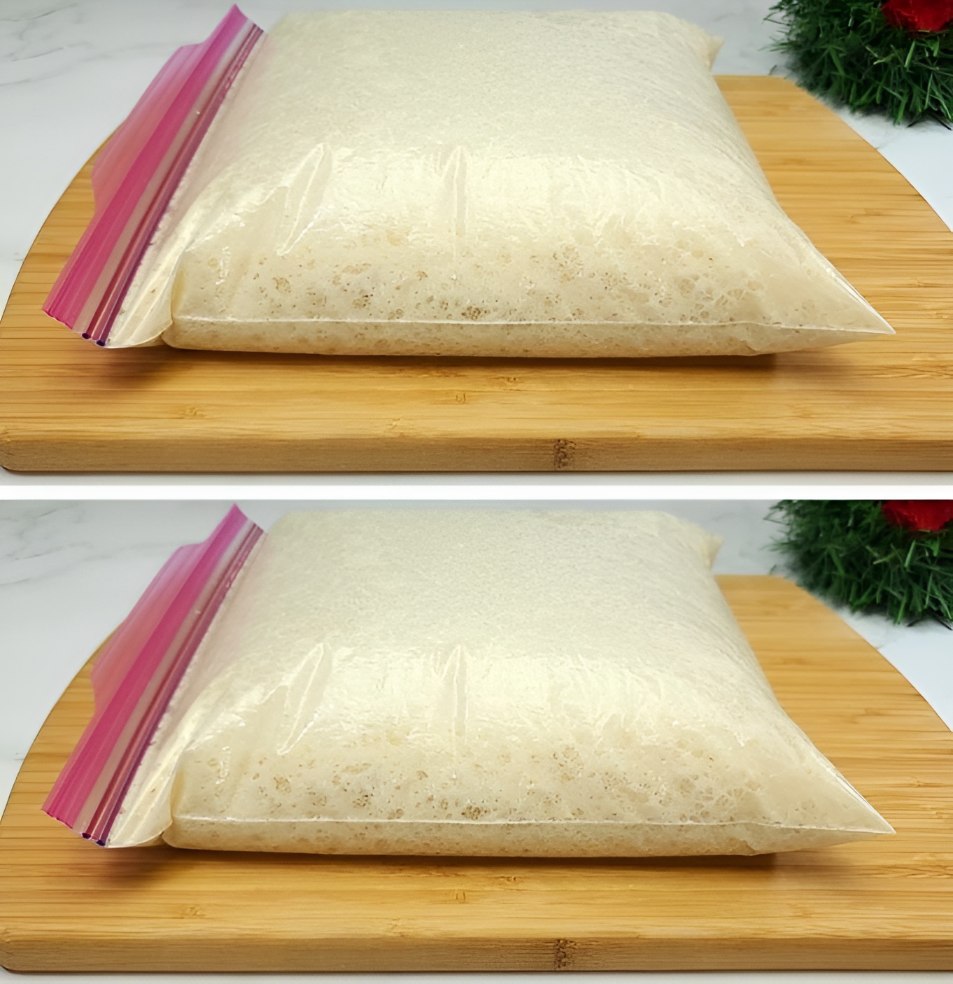 Meng heet water, warme melk, suiker, gist en zout in een schone, hittebestendige plastic zak.
