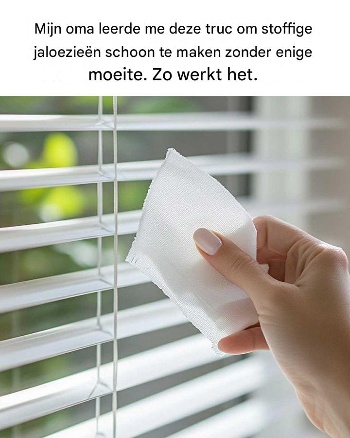Als er één ding is waar mijn oma in uitblonk, dan is het wel haar huis spik en span houden met minimale inspanning. Haar geheim? Ingenieuze schoonmaaktrucs die tijd en energie besparen. Een van haar best bewaarde geheimen was hoe ze stoffige jaloezieën – een klusje waar velen van ons een hekel aan hebben – vrijwel moeiteloos kon schoonmaken.