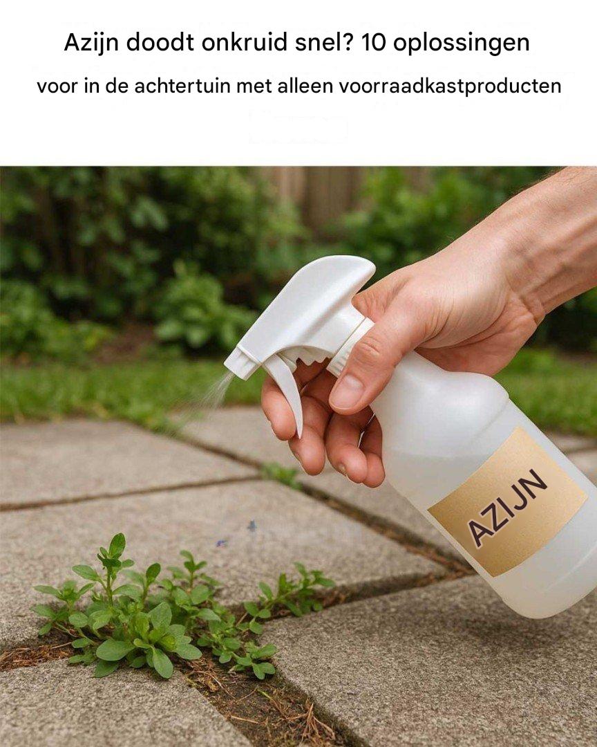 Azijn is een krachtige en natuurlijke onkruidverdelger dankzij de hoge zuurgraad. Het azijnzuur in azijn onttrekt vocht aan onkruid, waardoor het uitdroogt en afsterft. Gebruik witte azijn met minstens 5% azijnzuur voor het beste resultaat.