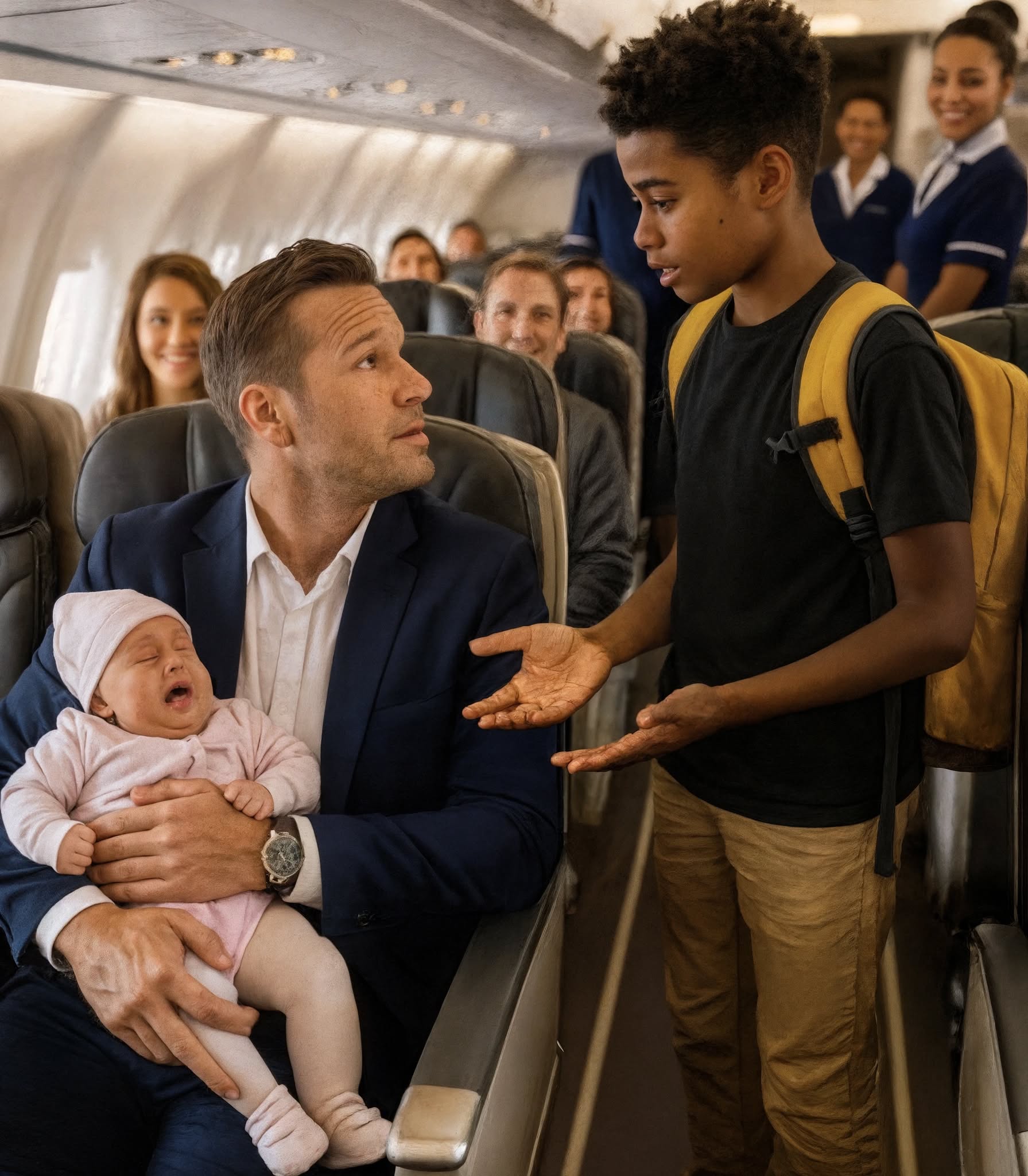 Henry spojrzał w górę ze zdziwieniem. Przed nim stał czarnoskóry nastolatek, nie starszy niż szesnaście lat, w znoszonym plecaku i prostym ubraniu. Jego trampki były stare, ale w jego oczach błyszczał głęboki spokój. W kabinie rozległ się szmer: kim był ten chłopak i co mógł robić?