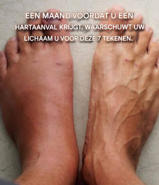 Let op deze signalen, want ze kunnen erop wijzen dat u binnen een maand een hartaanval krijgt. Het is van essentieel belang om ze te beschouwen als waarschuwingssignalen. Gezwollen voeten.
