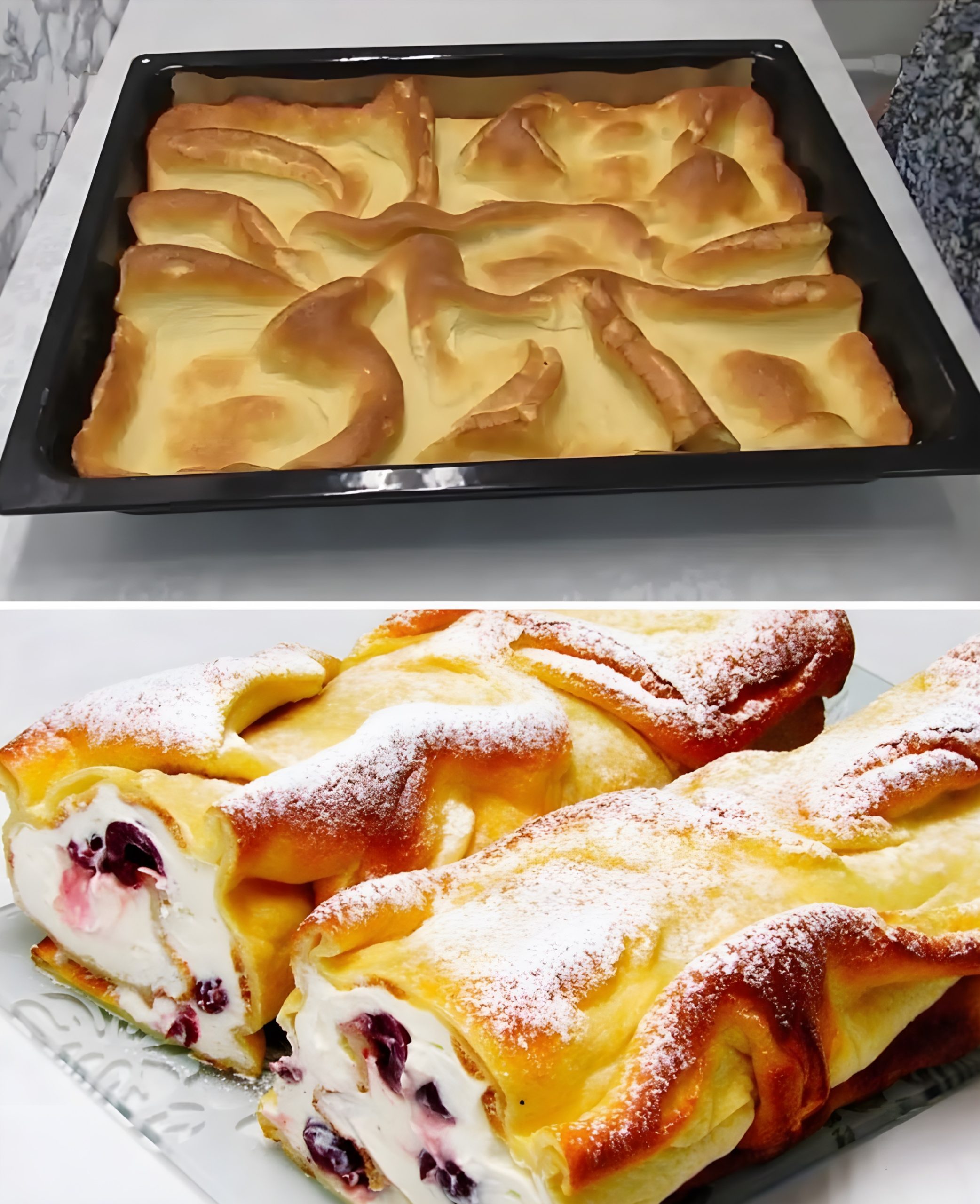 Voor het deeg neem je de eieren, voeg een beetje zout en suiker toe en meng alles goed. Voeg geleidelijk de helft van de afgemeten hoeveelheid melk toe aan het mengsel en roer voorzichtig.