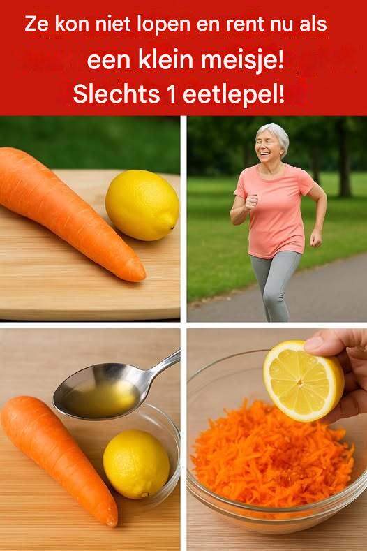 Maken gewrichtspijn en stijfheid uw dagelijkse activiteiten tot een uitdaging? Stelt u zich eens voor dat u een eenvoudige, natuurlijke remedie vindt om deze problemen direct aan te pakken. Het antwoord ligt in de eenvoudige combinatie van citroen en wortel, twee gemakkelijk verkrijgbare ingrediënten die wonderen kunnen verrichten voor de gezondheid van uw gewrichten en uw algehele welzijn. Door slechts een eetlepel van dit krachtige middel in uw dagelijkse routine op te nemen, kunt u een transformerend verschil zien in hoe u zich voelt en beweegt!