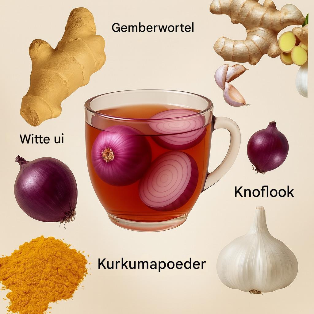 Je hart vraagt niet veel, maar het verdient het beste. Deze drank geeft je precies dat. Knoflook bevat allicine, een natuurlijke stof die geprezen wordt om zijn ondersteuning van een gezonde bloeddruk en een betere bloedsomloop. Limoen draagt bij met zijn rijke vitamine C, voedt de bloedvaten en voorkomt oxidatieve schade. Kurkuma, die gouden specerij, bestrijdt ontstekingen die na verloop van tijd de slagaders stilletjes kunnen verstoppen. Gember houdt de bloedsomloop in stand, verlaagt het slechte cholesterol en ondersteunt een sterkere bloedsomloop.