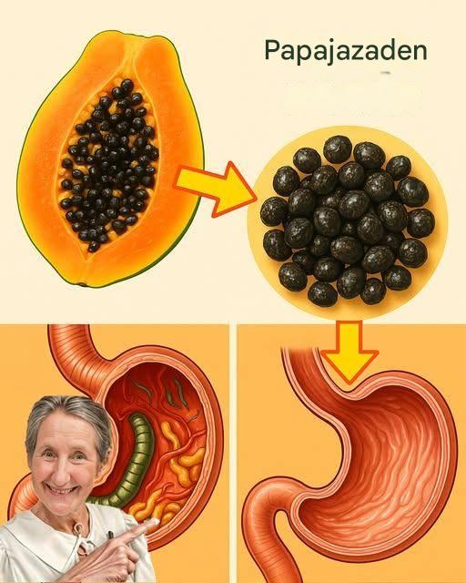 Er is iets hartverwarmends aan het openen van een rijpe papaja op een zonnige ochtend. De zoete geur, het feloranje vruchtvlees – het is alsof de natuur je toelacht. Maar als je net als de meeste mensen bent, schep je die kleine zwarte pitjes er waarschijnlijk uit en gooi je ze zonder erbij na te denken weg. Dat deed ik vroeger ook, totdat mijn grootmoeder – wijs en altijd vol natuurlijke remedies – me zachtjes vertelde: « Gooi niet weg wat God de vrucht heeft gegeven om zichzelf te beschermen. »