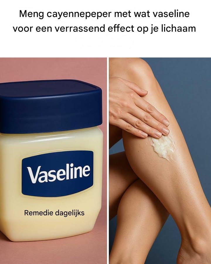 Wanneer cayennepeper wordt gemengd met vaseline, ontstaat een topische toepassing die zowel pijnverlichting als huidbescherming biedt. De capsaïcine in cayennepeper stimuleert de bloedsomloop en zorgt voor een verwarmend gevoel, wat spier- en gewrichtspijn kan verlichten. Vaseline fungeert als drager en zorgt ervoor dat de capsaïcine langer op de huid blijft en dieper doordringt. Dit synergetische effect versterkt de pijnstillende eigenschappen van cayennepeper en hydrateert en beschermt de huid tegelijkertijd tegen irritatie.