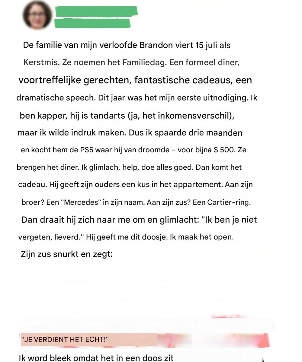Als kapper die een relatie had met een rijke tandarts, zag ik dit als een kans om me eindelijk geaccepteerd te voelen door zijn rijke, hechte familie.