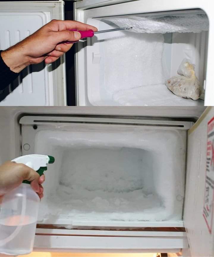 Plaats een kom met heet water in de vriezer en bereid een oplossing door 2 eetlepels zout op te lossen in 1 eetlepel water. De resulterende zoutoplossing wordt in een spuitfles gegoten en gelijkmatig op de wanden van de vriezer gespoten. Na een paar minuten begint het ijs geleidelijk te smelten en kan vervolgens worden verwijderd zonder het oppervlak te beschadigen met bijvoorbeeld houten sushisticks.