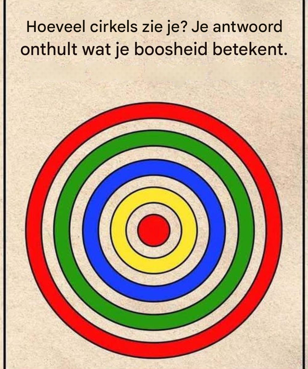Op het eerste gezicht zien veel mensen misschien vijf of zes cirkels. Anderen, die meer oog hebben voor details of geduld, tellen er misschien meer. De afbeelding bestaat uit overlappende ringen in verschillende kleuren, en afhankelijk van hoe geconcentreerd je bent, zie je er misschien wel een paar die anderen niet zien. Maar wat heeft dit met boosheid te maken?