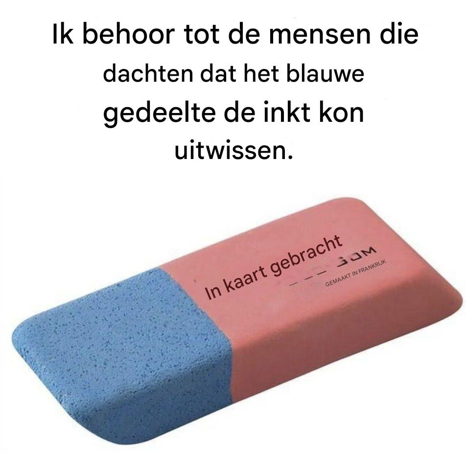 Jarenlang dachten veel mensen dat het blauwe gedeelte bedoeld was om penstrepen te wissen. Het resultaat: gaten in het papier en een hoop frustratie. Het is een beetje alsof je een wijnvlek probeert te verwijderen met bruiswater: de intentie is goed, maar het effect is niet overtuigend. In werkelijkheid is dit blauwe gedeelte ontworpen voor een heel ander doel… maar net zo   interessant  , vooral voor doe-het-zelvers en hobbyisten.