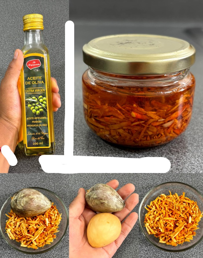 3- Voeg vervolgens zes eetlepels olijfolie toe aan het afgesloten bakje met de avocadopit.