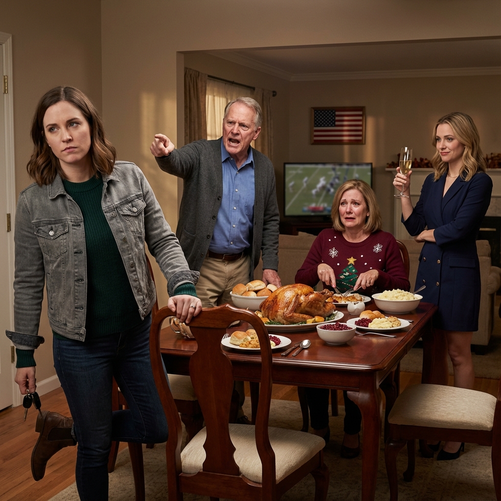 Mój ojciec uderzył dłonią w stół tak mocno, że sos żurawinowy zadrżał.