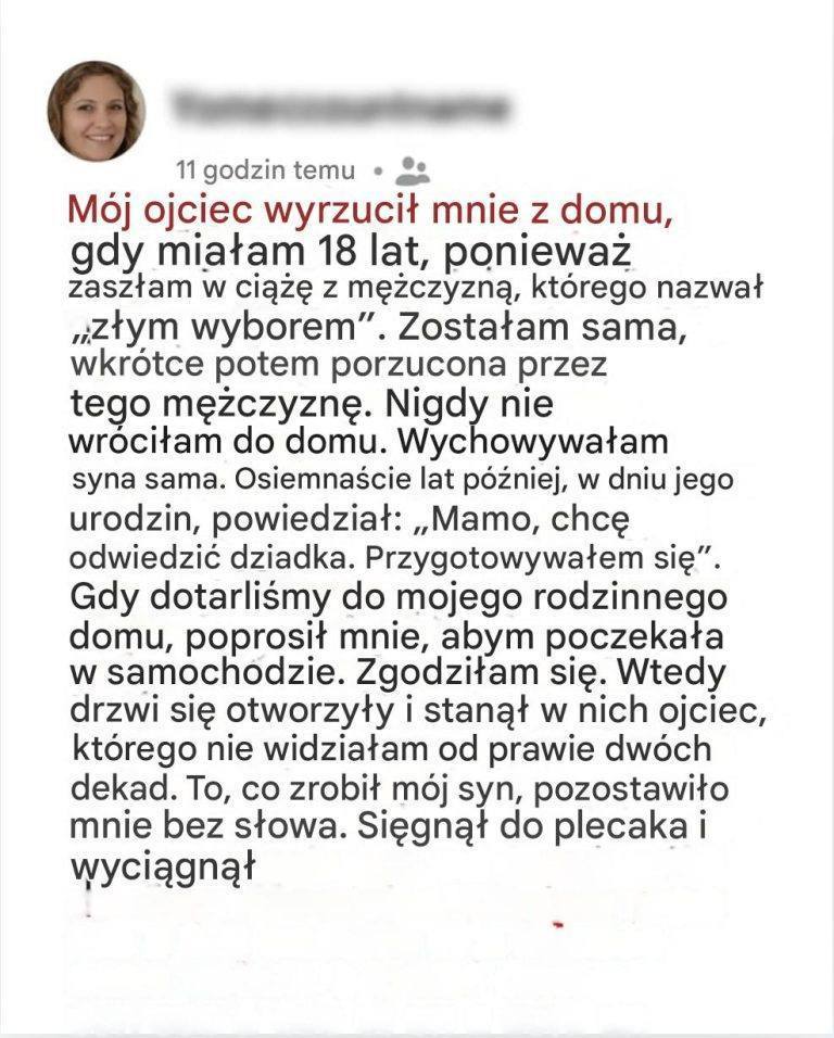 Był wtorek wieczorem. Siedział przy kuchennym stole, z okularami na nosie, przeglądając gazetę, jakby to był po prostu kolejny dzień. Moje ręce się trzęsły.