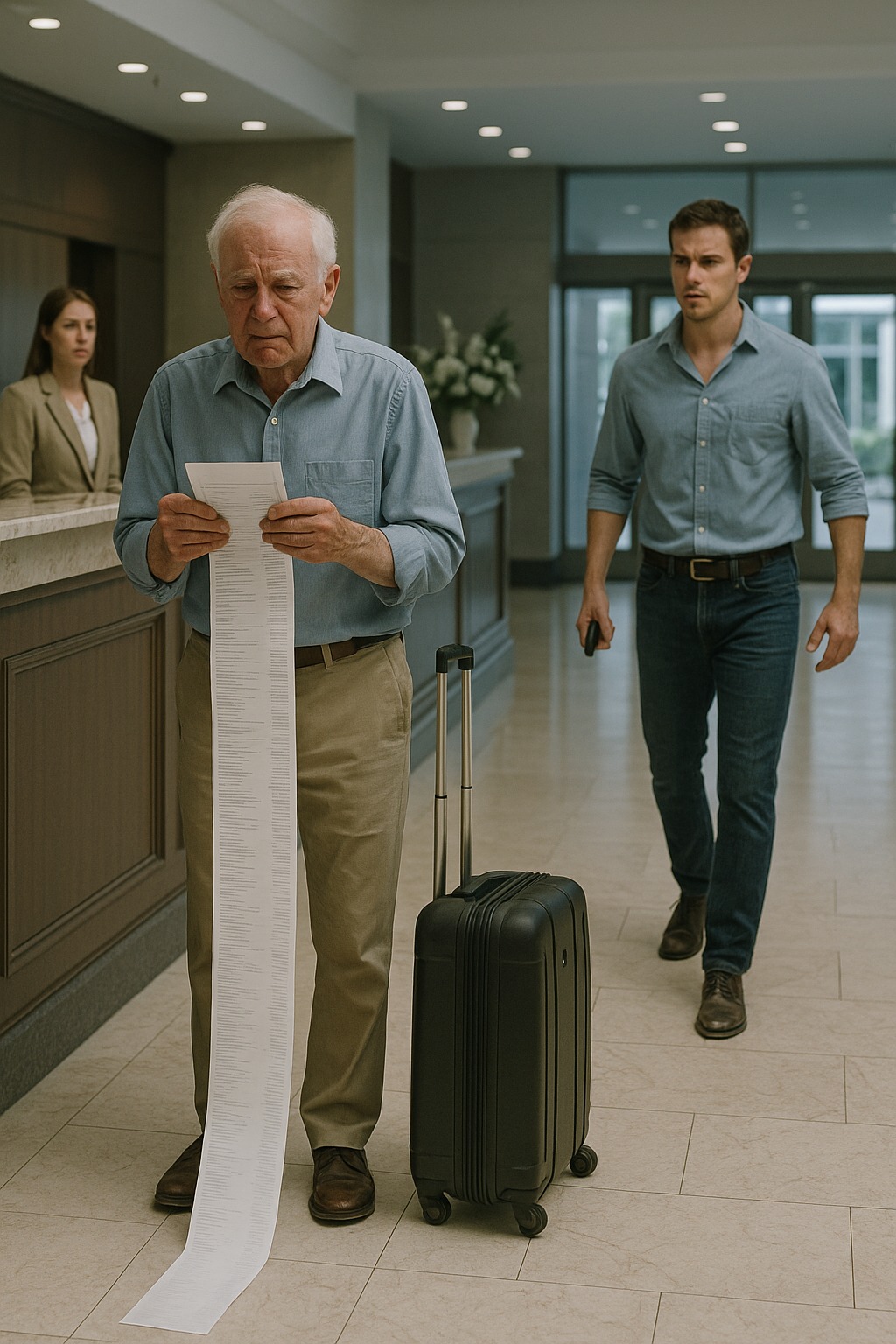 Powinien być uczczony, a nie pozostawiony sam sobie. A jednak był tam – mój 74-letni dziadek, zasady przy hotelowej kasie z fakturą na 12 000 dolarów w dłoniach. Zgarnął, odłączając ustabilizować papier, który drżał w palcach.