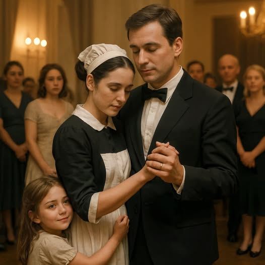 Pośród tego całego przepychu, tylne drzwi cicho się otworzyły. Weszła kobieta w szarym mundurze, z twarzą zmęczoną, pchając wózek do sprzątania. Za nią szła dziewczynka w wieku około sześciu lat, w prostej sukience, z szeroko otwartymi oczami, zachwycona przepychem.