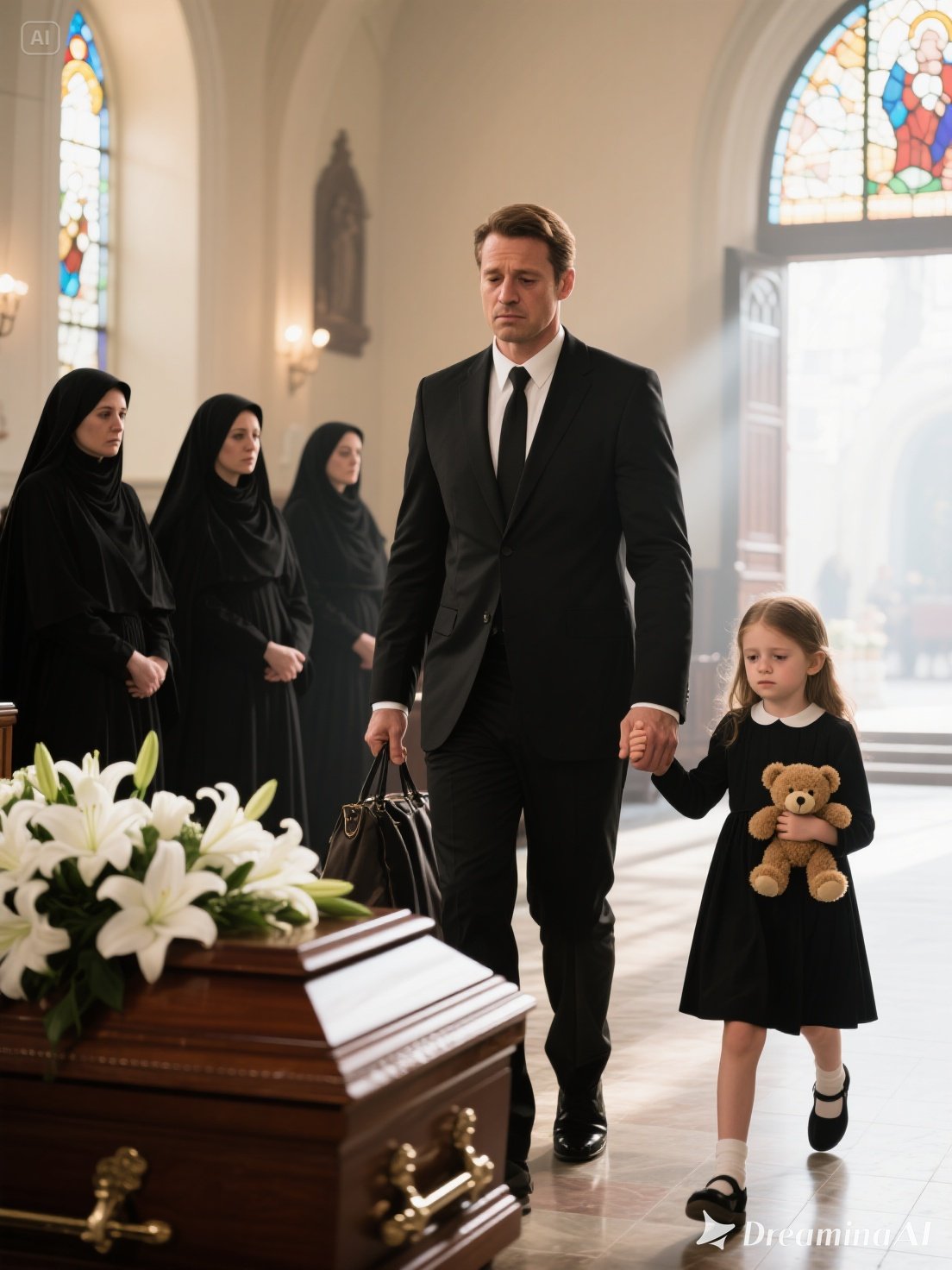 Trumna z przodu lśniła w blasku świec, a ojciec Belden miał właśnie zacząć, gdy drzwi skrzypnęły i się otworzyły.