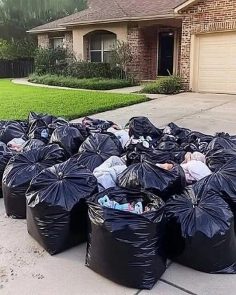 Worki na śmieci walały się po trawie. Zabawki, ubrania, książki – różowy kocyk Avy zaplątany w krzaki.