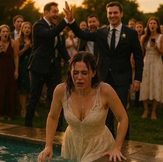 Na graniu pan młody nagle pcha pannę młodą do basenu, niszcząc jej suknię i makijaż.