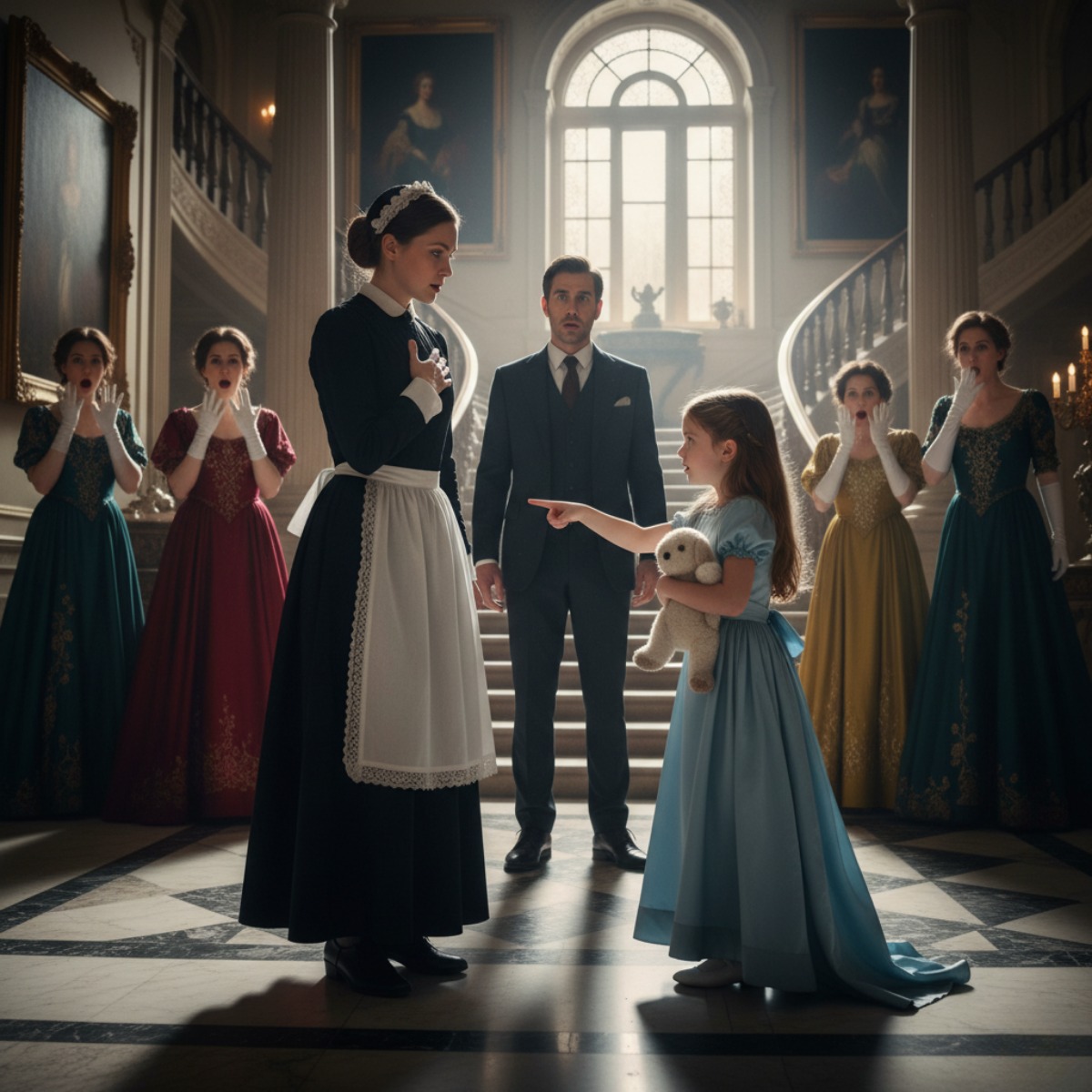 Jej mały palec wskazywał prosto na Clarę – służącą.
