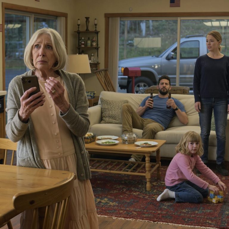 Słowa zawisły ciężko w pokoju. Usta Niny otworzyły się, a potem zamknęły. Derek odstawił piwo na stolik kawowy, jego wcześniejsze rozbawienie całkowicie zniknęło. Przeniósł ciężar ciała, unikając wzroku wszystkich. Moja wnuczka wtuliła twarz w bok matki, zdezorientowana nagłym napięciem.