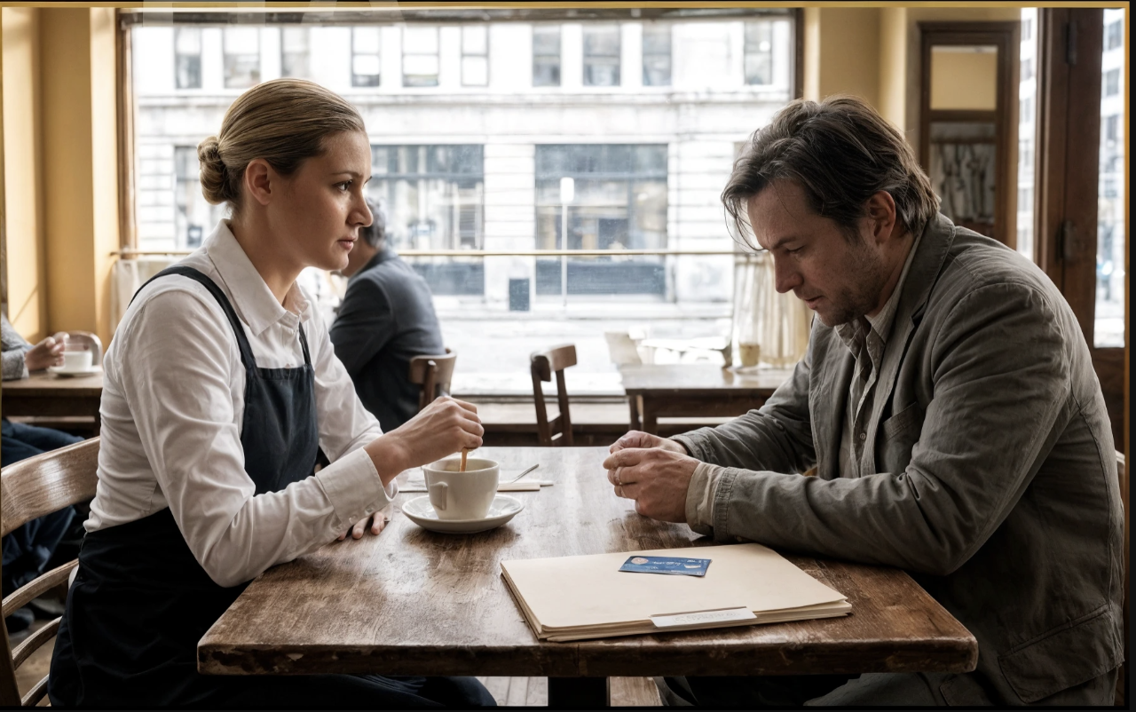 „Nie chciałam sprawiać kłopotów” – powiedziałam od razu. „Mój mąż wyrzucił mnie wczoraj wieczorem. Nie miałam pieniędzy, kart, niczego. Znalazłam starą kartę mojego ojca w kieszeni płaszcza i… nie myślałam”.