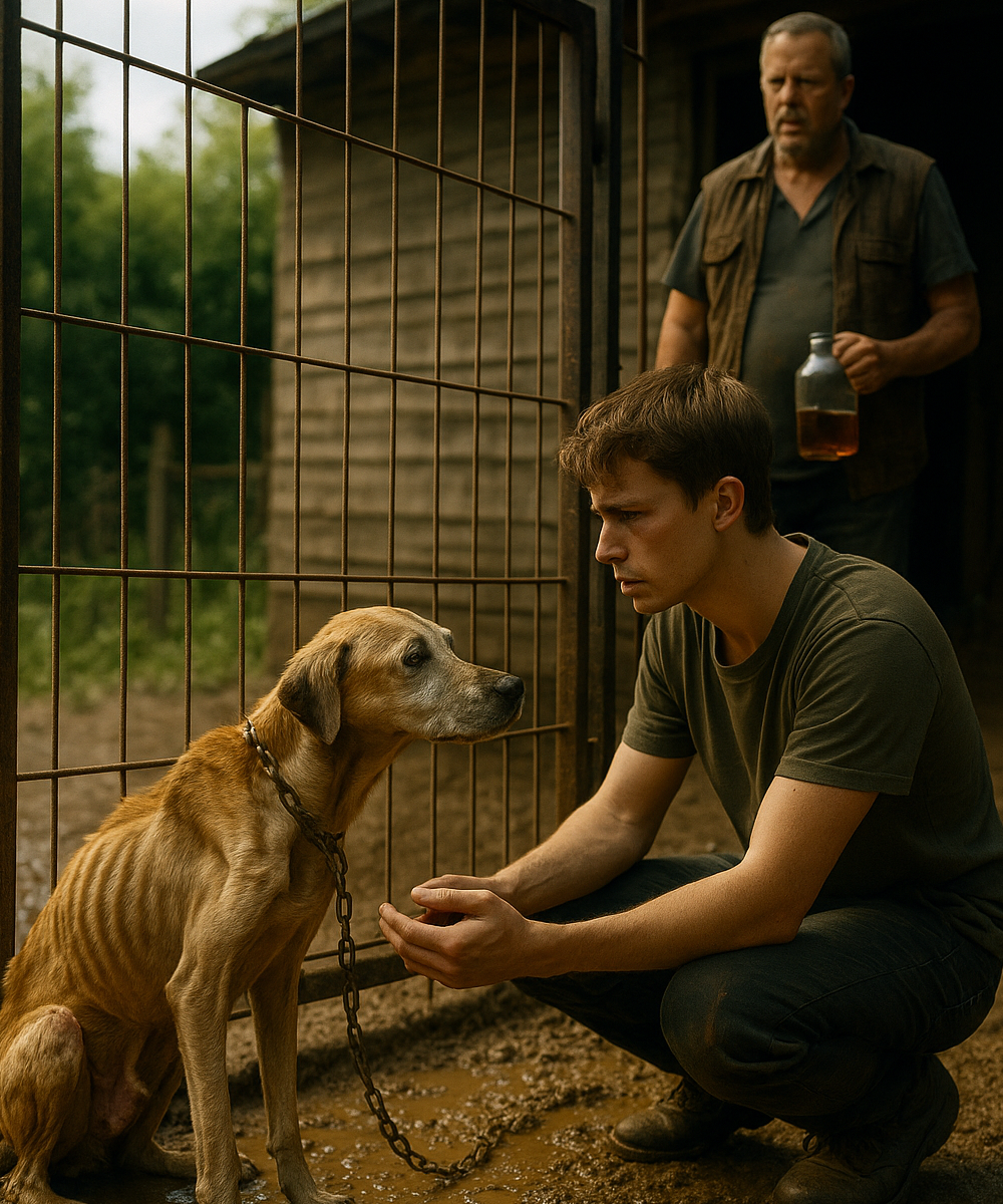Żebra wystawały mu przez skórę. Oczy miał zaschnięte. Łapa drżała, gdy próbował wstać. Był przykuty łańcuchem po kostki w błocie, zbyt słaby, by nawet szczekać.