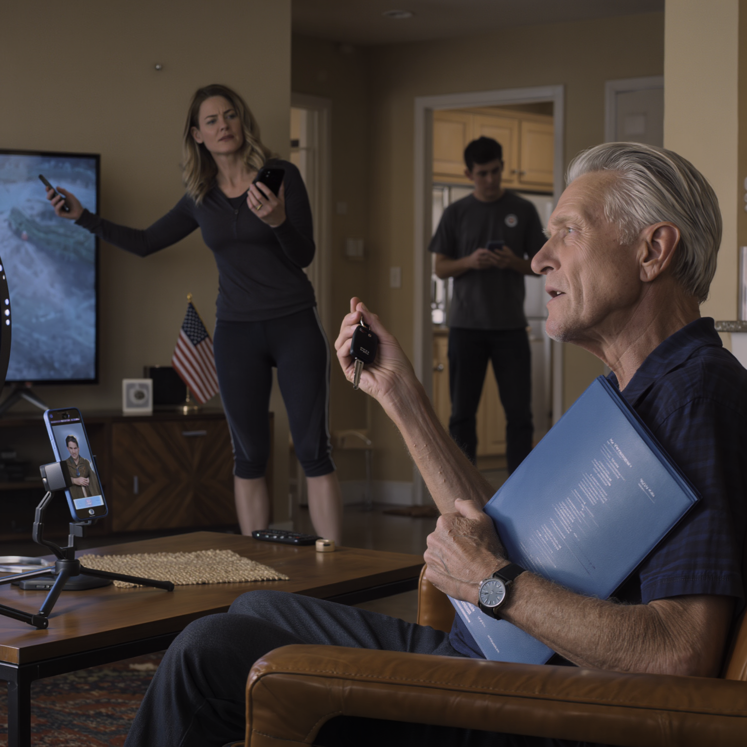 „Idź do swojego pokoju, staruszku” – powiedziała, już obracając lampę pierścieniową na moim stoliku kawowym, jakby wbijała flagę. „To teraz moja przestrzeń. Mam dziesięć tysięcy obserwujących czekających na mój stream z treningu”.