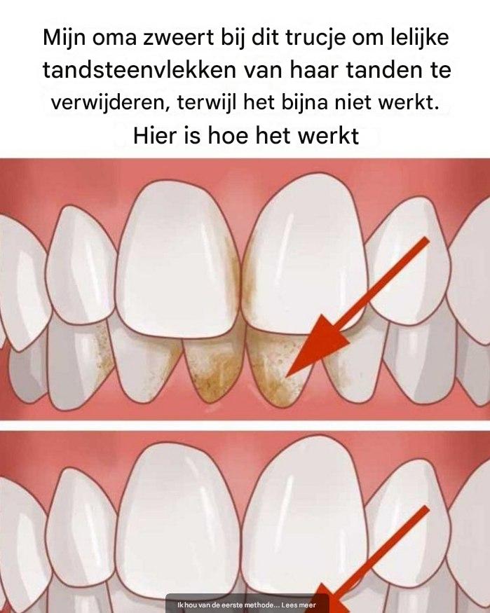 Tandsteenvorming – die hardnekkige, gelige afzettingen die aan je tanden blijven plakken – kan zowel ontsierend als schadelijk zijn voor je mondgezondheid. Hoewel professionele reinigingen essentieel zijn, wat als je tandsteen thuis voorzichtig tussen de bezoeken door zou kunnen verwijderen zonder agressieve chemicaliën of dure producten? Volgens mijn oma is er een verrassend eenvoudige methode die vrijwel geen moeite kost en helpt om een schone, frisse glimlach te behouden. Deze natuurlijke truc, die al generaties lang wordt doorgegeven, vereist slechts een paar gewone huishoudelijke middelen en een beetje consistentie. Zo werkt het.
