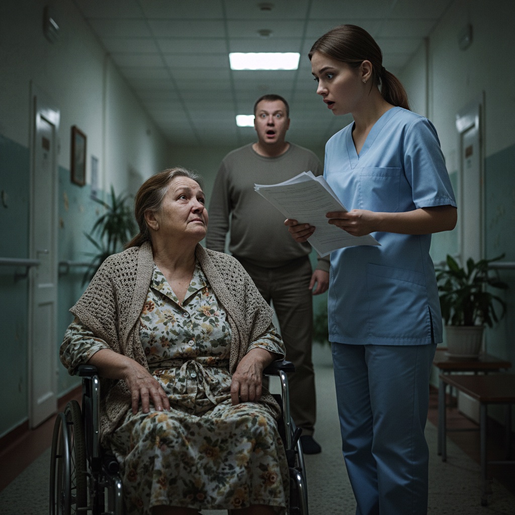 Uważając matkę za ciężar, syn oddał ją do najtańszego domu opieki. „Jakie jest pani nazwisko panieńskie?” – zapytała obojętnie pielęgniarka, wypełniając dokumenty. Starsza kobieta podała swoje nazwisko. Nagle pielęgniarka spojrzała na nią z przerażeniem w oczach. A kiedy zadała kolejne pytanie, syn, stojący obok niej, zmroził się.