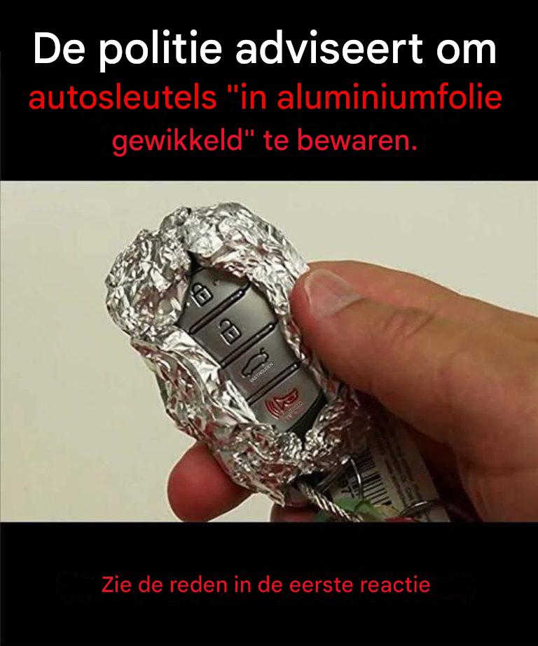 Een andere optie is om online een Faraday-tas te kopen voor een paar euro. Deze heeft dezelfde isolerende eigenschappen als aluminiumfolie en dient als bescherming tegen de overdracht van informatie die gebruikt kan worden bij autodiefstal.