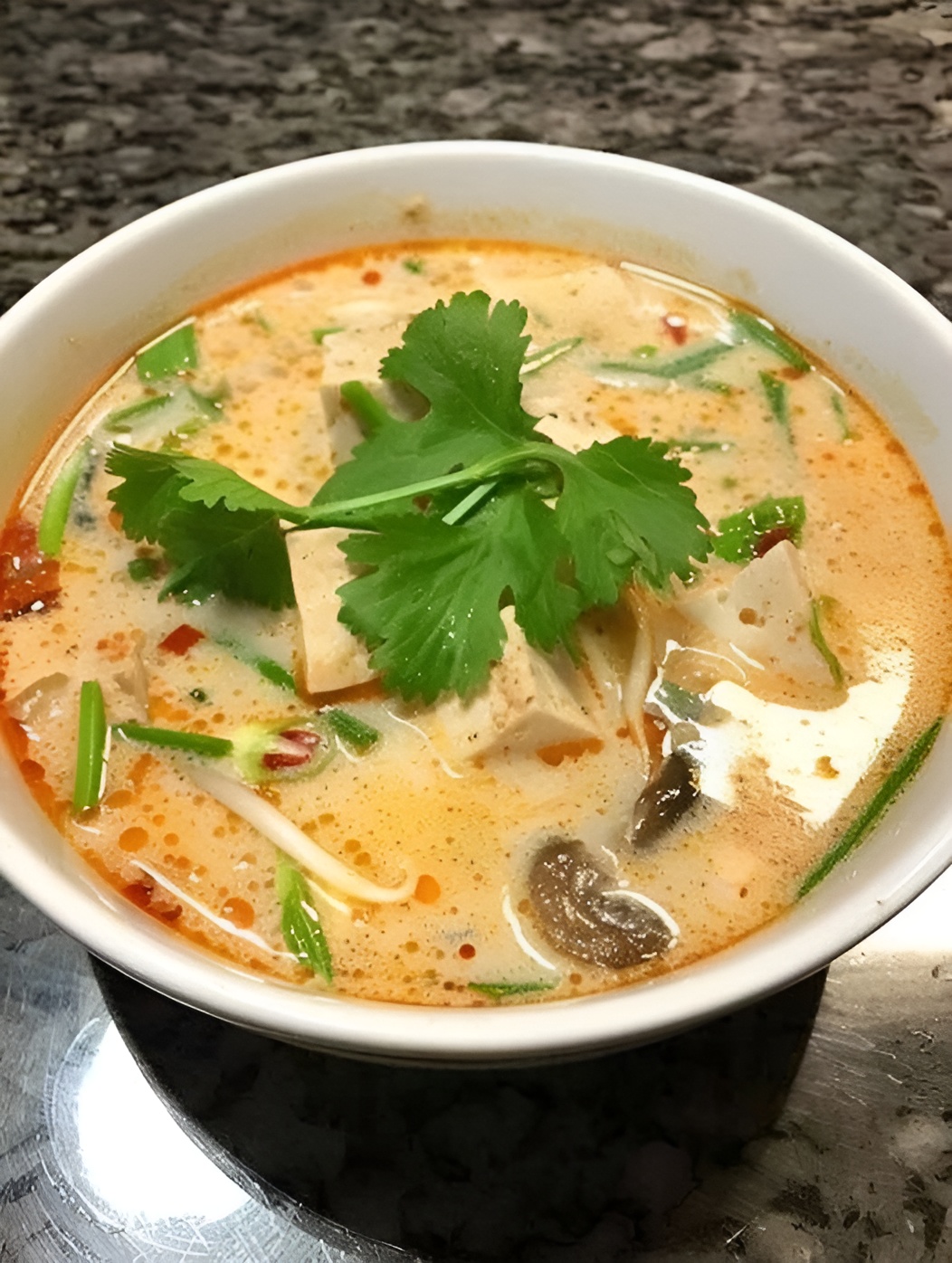Deze plantaardige versie van de klassieke Thaise Tom Kha-soep heeft een romige kokosbouillon vol aromatische kruiden, zachte tofu en smaakvolle paddenstoelen. Perfect in balans tussen pittig, zuur en umami!