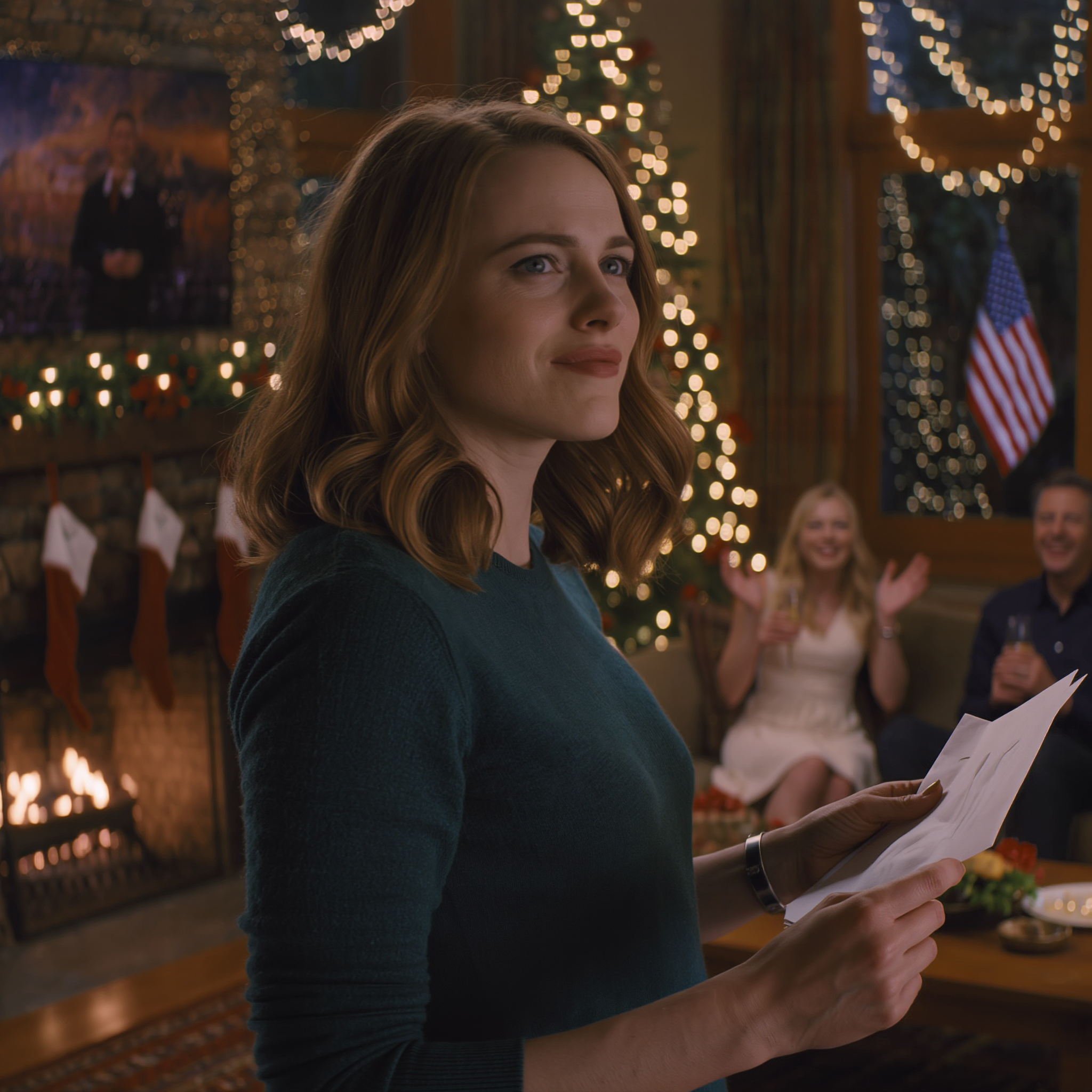 Krzesła zaskrzypiały. Ktoś zagwizdał. Wujek klepnął ojca w plecy, jakby właśnie wygrał na giełdzie. Choinka w kącie mrugała, zapalając się i gasnąc, a jej światełka odbijały się od krawędzi kieliszka szampana Jessiki, rzucając na sufit małe złote kółka. Telewizor w sąsiednim pokoju, wciąż włączony na jakimś filmie Hallmarka, pokazywał zamarzniętą parę całującą się na śniegu, jakby cały dom uzgodnił motyw uporządkowanego, fotogenicznego szczęścia.