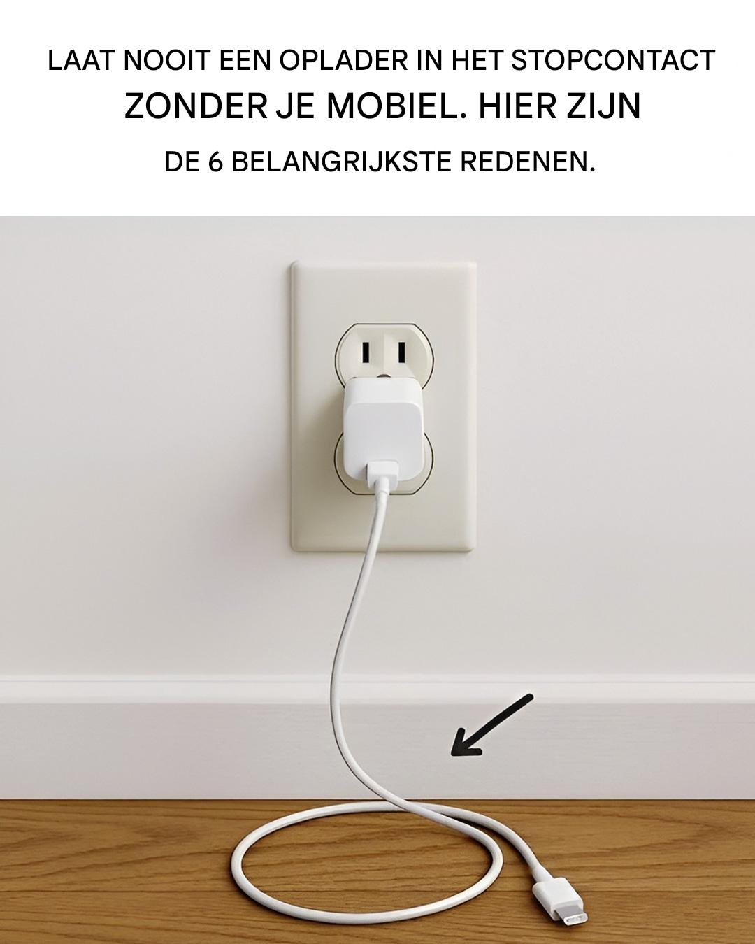Waarom je je telefoonoplader nooit in het stopcontact moet laten zitten zonder je mobiel