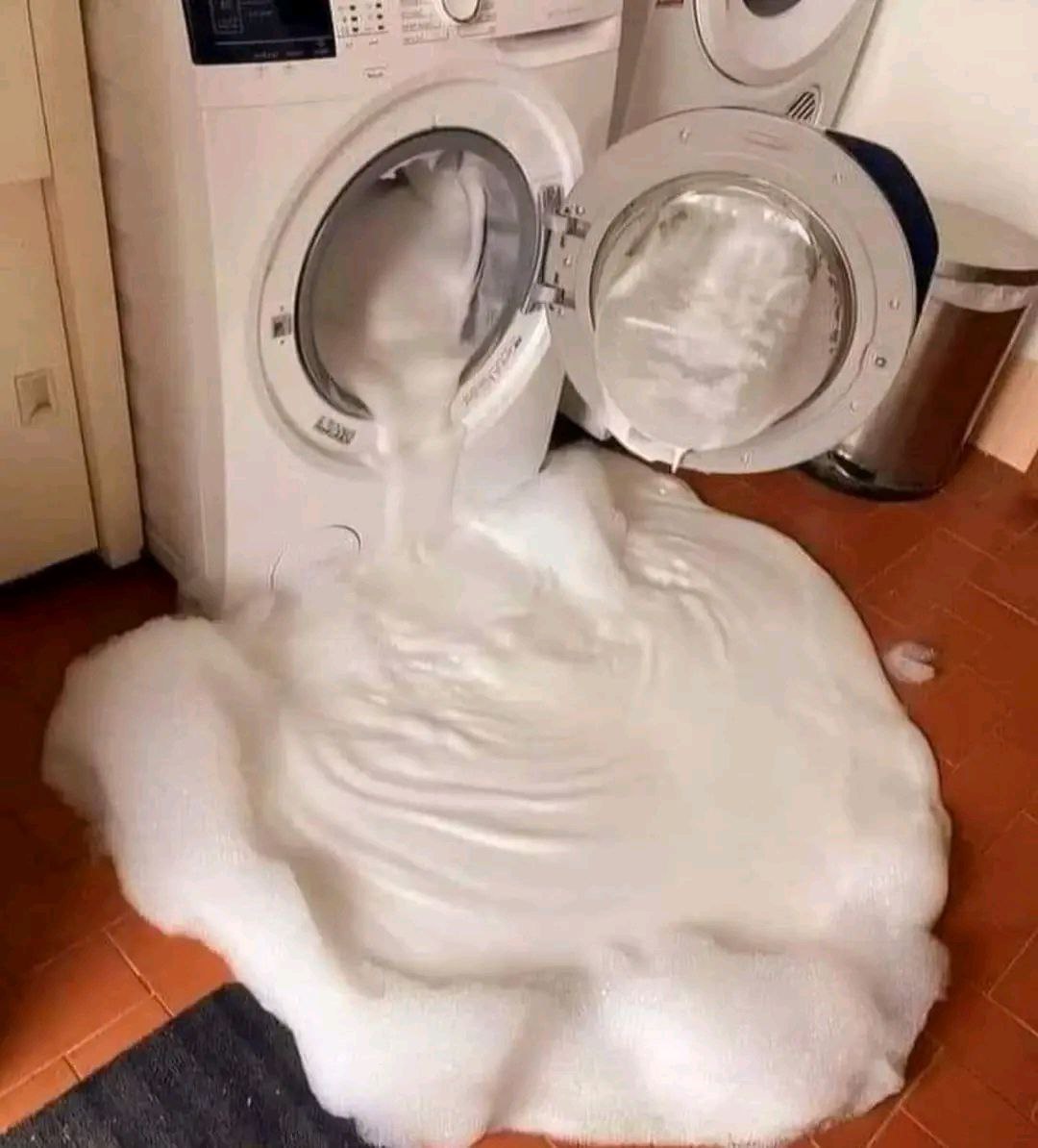 Een scène met schuim dat uit een wasmachine lekt, is vaak het gevolg van het gebruik van gewoon afwasmiddel of te veel wasmiddel in een machine die is ontworpen voor hoog efficiënt gebruik (HE). Deze ongelukken veroorzaken overmatig schuim dat overstroomt, waardoor soms de wasruimte onder water komt te staan. Hoewel de situatie misschien komisch lijkt, kan deze echte problemen veroorzaken, waaronder mogelijke waterschade of schade aan het apparaat.