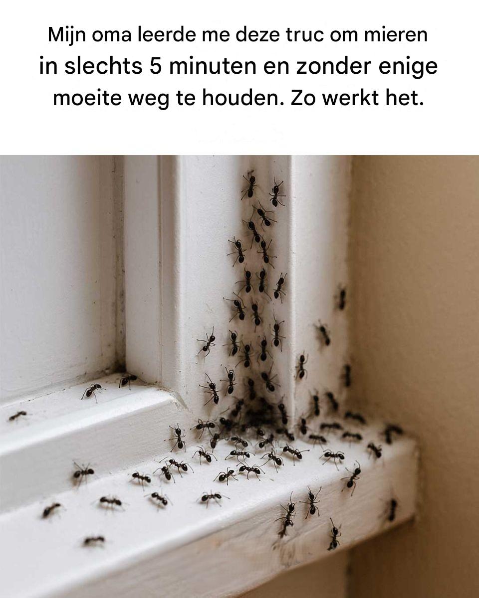 De truc van mijn oma om mieren weg te houden is met een simpel mengsel van azijn en water. Ze zweert bij deze methode en beweert dat het haar huis al jaren mierenvrij houdt. De truc is om gelijke delen witte azijn en water in een plantenspuit te mengen en dit aan te brengen op plekken waar vaak mieren voorkomen.