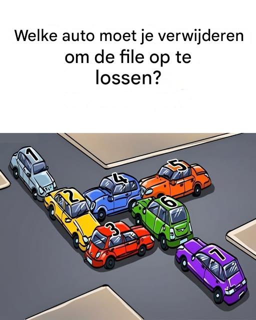 Hier is een kleine visuele puzzel die een beroep doet op je observatievermogen en logica. Het doel is simpel (ogenschijnlijk): identificeer de auto die verplaatst moet worden om de verkeersstroom te versoepelen.